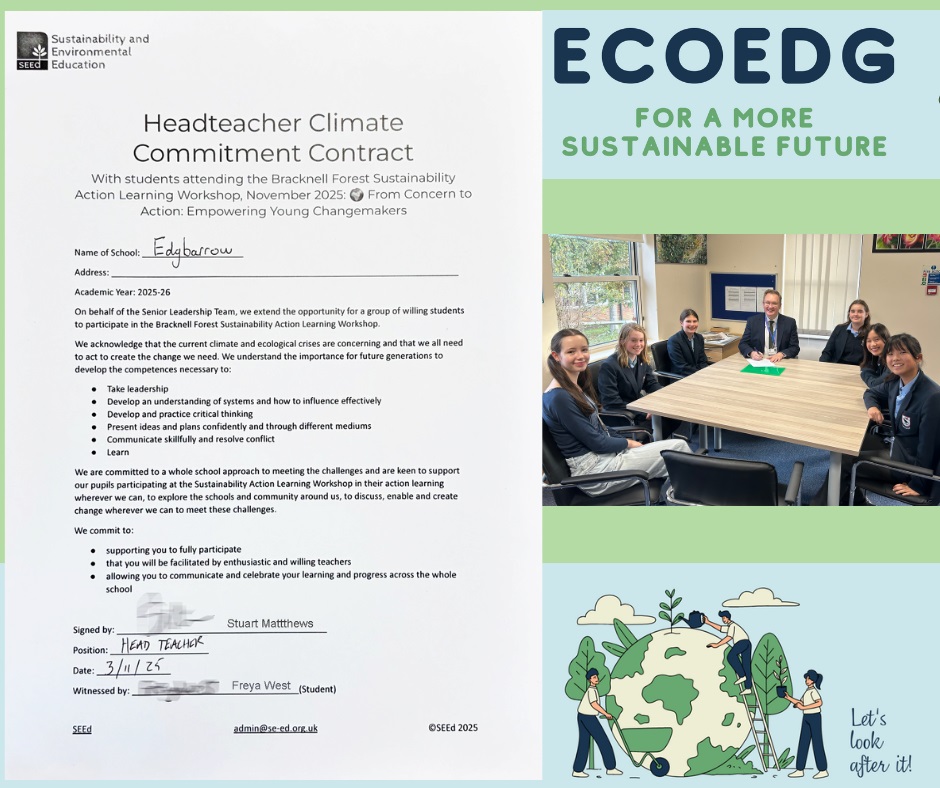 Edgbarrow also took part in the “Wellington Resolution”, where ideas shared by students at the event will be shared globally at the real COP 30 event in Brazil next month.