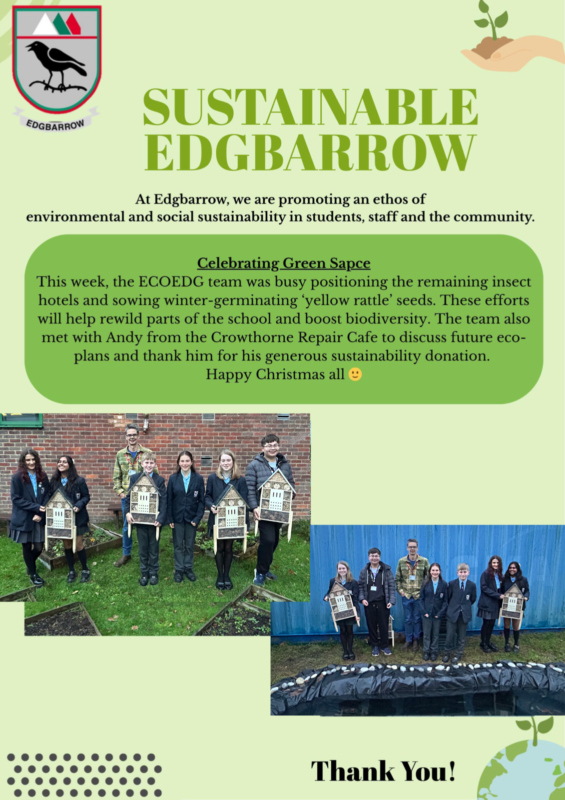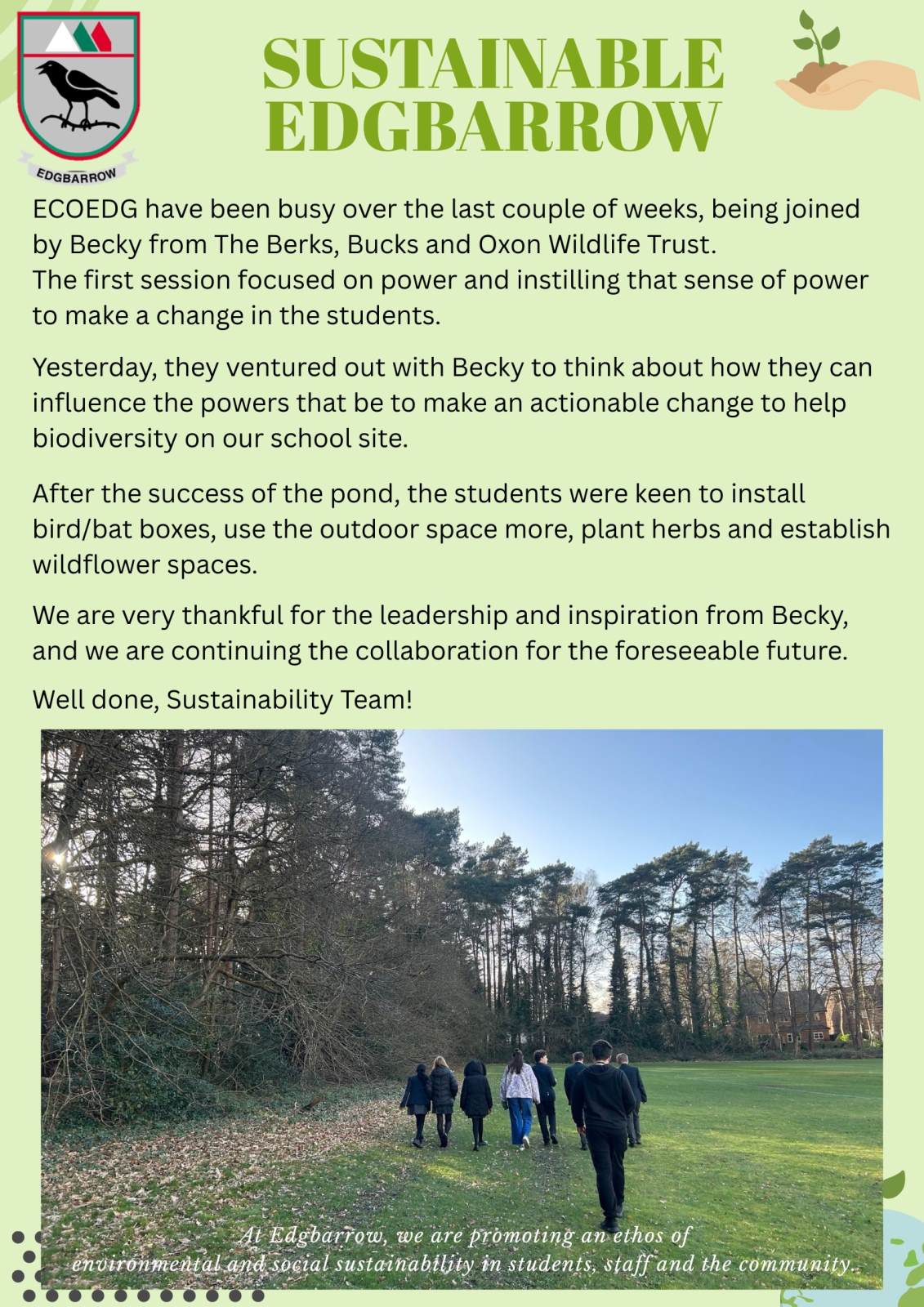 At Edgbarrow, we are committed to nurturing a culture of sustainability that prepares every student to be an environmentally conscious, socially responsible, and ethically minded global citizens